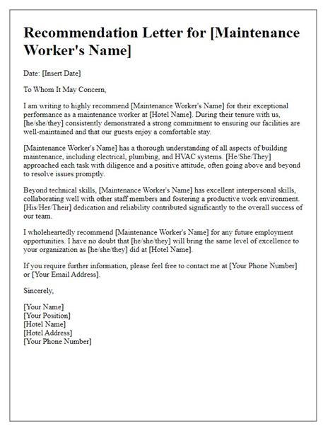 Free Read letter of recommendation for maintenance worker Nook PDF
